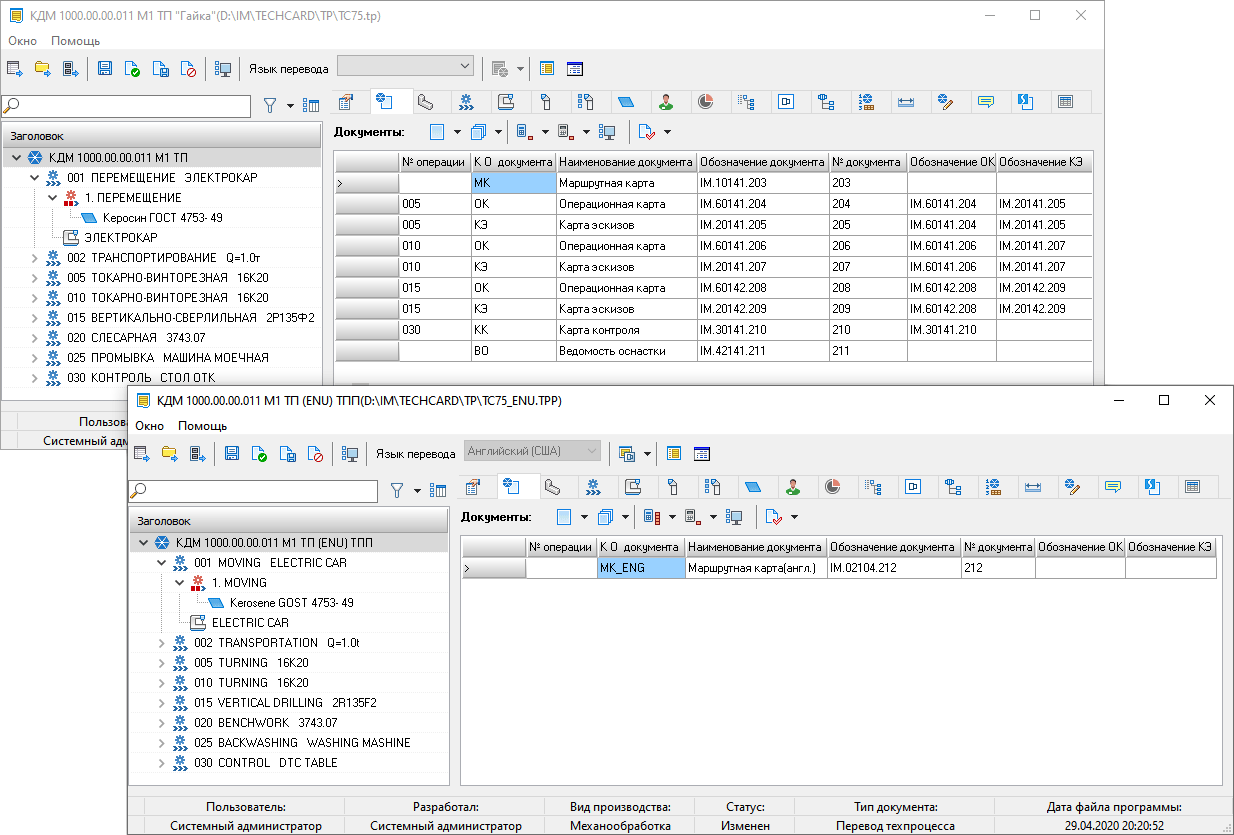 АРМ перевода техпроцессов представляет собой узкоспециализированное автоматизированное рабочее место, предназначенное для перевода технической документации системы Techcard, а именно техпроцессов, эскизов, входящих в их состав, с русского языка на любой другой.