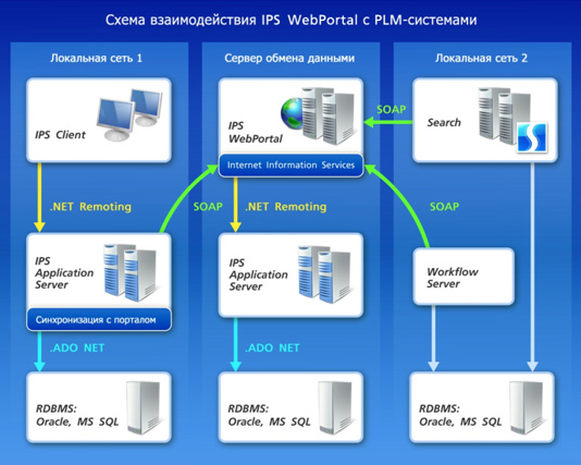 Схема взаимодействия IPS WebPortal с PLM-системами