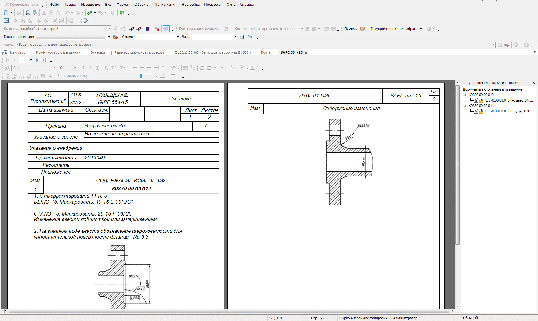 Редактор извещений об изменениях в IPS - тоже не просто редактор документов. Помимо собственно функций оформления извещений (вставка графики, формул, автоматическое заполнение различных граф, сортировка изменений и т.п.), редактор помогает управлять жизненным циклом изменяемых документов и объектов. Например, автоматически выпускает версии включаемых в извещение документов и перемещает их на нужный шаг ЖЦ в момент актуализации извещения. Также извещения используются для автоматизации подбора версий объектов при поиске их состава и применяемости. Есть в системе и множество сервисных функций, помогающих организовать процесс проведения изменений: Погасить ПИ, Принять предложения по ПР, Выпустить ДИ или ДПИ, Создать комплект извещений и пр.