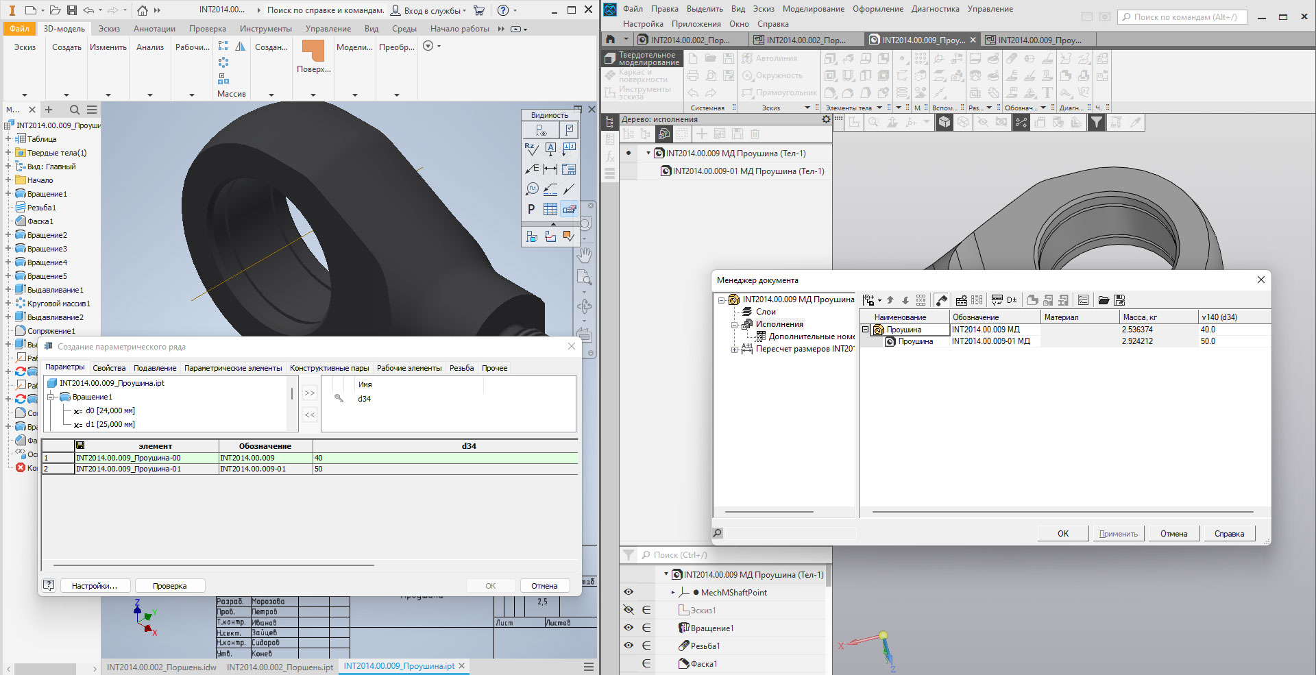 IMCADConverter также позволяет конвертировать детали и сборки с исполнениями. Исполнения могут иметь различные свойства, отличаться значениями размеров, в них могут включаться и выключаться операции и сопряжения компонентов, может изменяться состав сборки. Вся эта информация передается в таблицу исполнений в документе КОМПАС-3D. А так как IMCADConverter поддерживает полноценную параметризацию, то при переключении исполнений в КОМПАС-3D модель абсолютно корректно перестраивается.