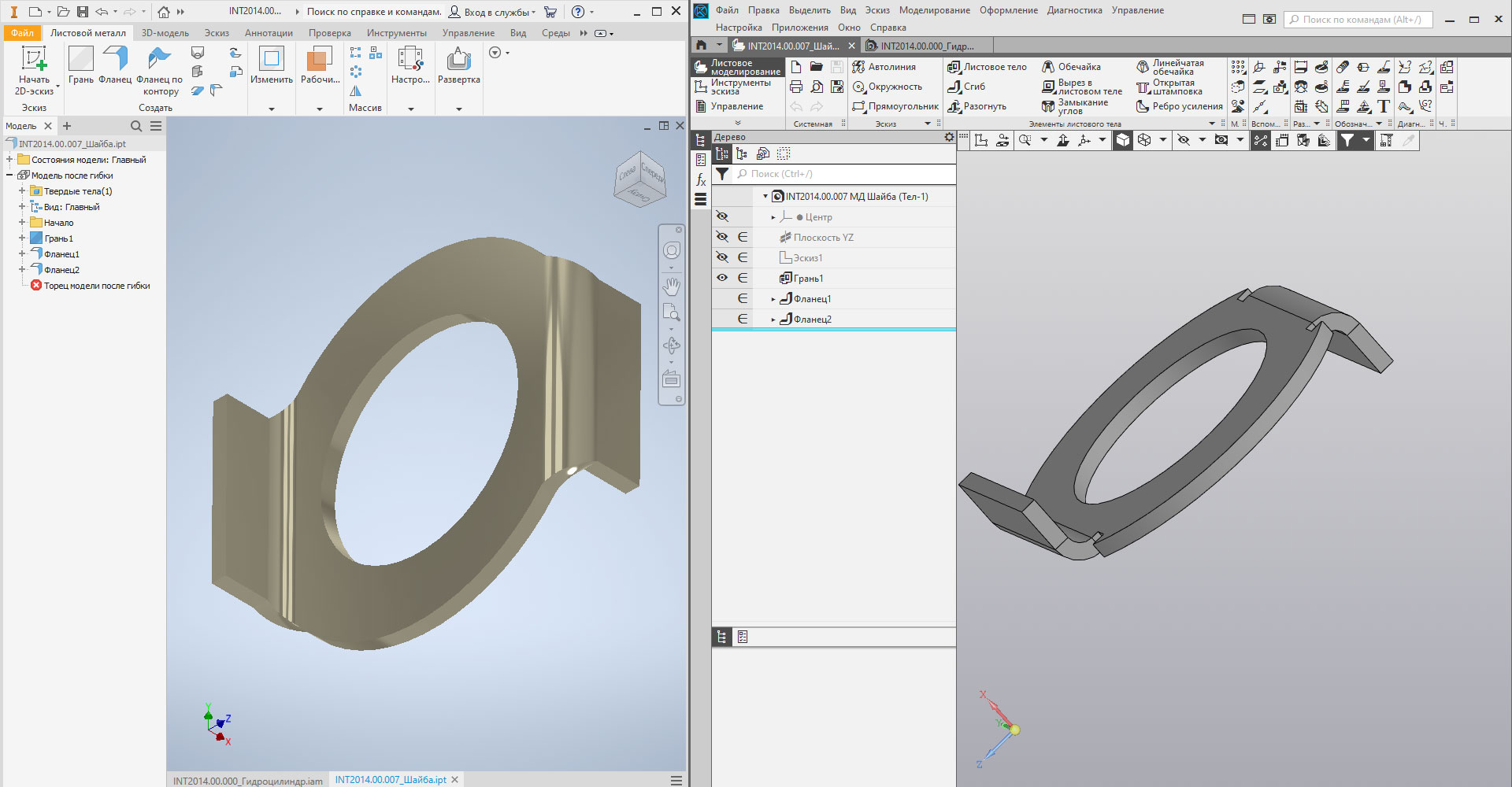 В общем случае конвертация листовых деталей осуществляется аналогично обычным деталям через создание операций в дереве построения. В случаи, если методология листового проектирования CAD-системы КОМПАС-3D не позволяет воспроизвести те же операции, что были применены при создании детали, в Autodesk Inventor применяется следующий механизм: IMCADConverter берет развертку листовой детали в исходной CAD-системе, создает плоское листовое тело в КОМПАС-3D, а затем сгибает эту развертку в правильных местах. Таким образом, получаем листовую деталь в КОМПАС-3D с гарантированно правильной разверткой и с правильной геометрией согнутой модели.