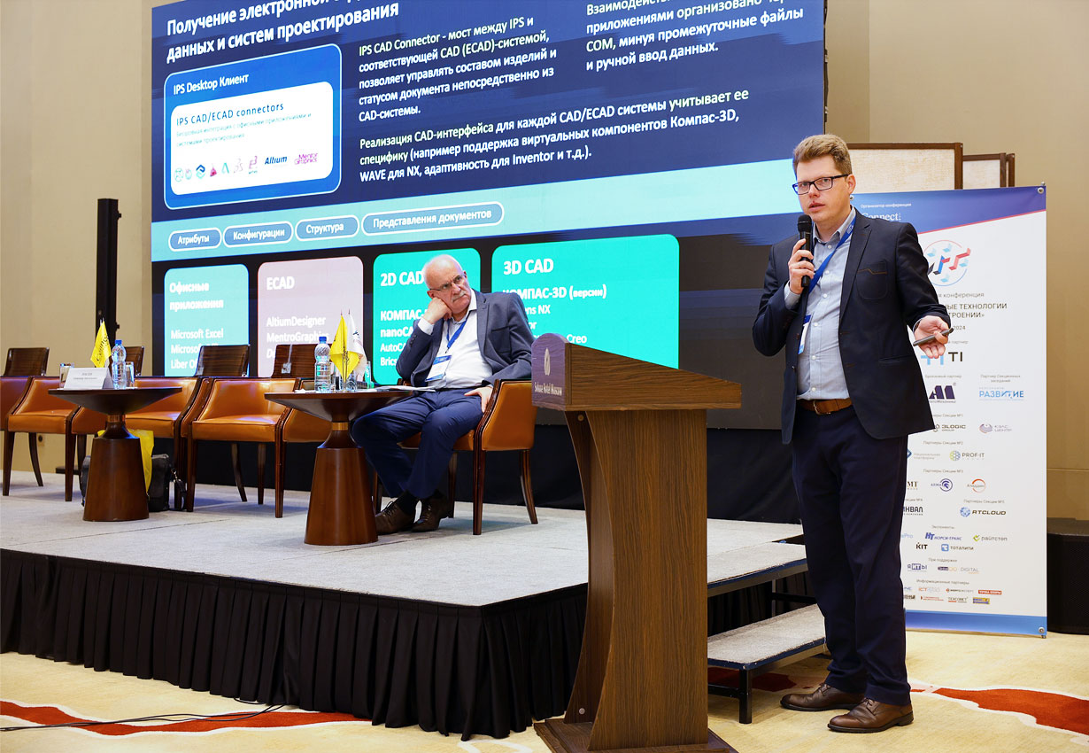 Представители компании ИНТЕРМЕХ приняли участие в двух тематических секциях. На площадке Секции 1, где обсуждались ключевые вопросы цифровизации в тяжелом и энергетическом машиностроении, Сергей Кипнис, ведущий специалист отдела маркетинга ИНТЕРМЕХ, представил стратегию перехода на импортонезависимое решение на базе платформы IPS PLM разработки ИНТЕРМЕХ в области конструкторской и технологической подготовки производства.