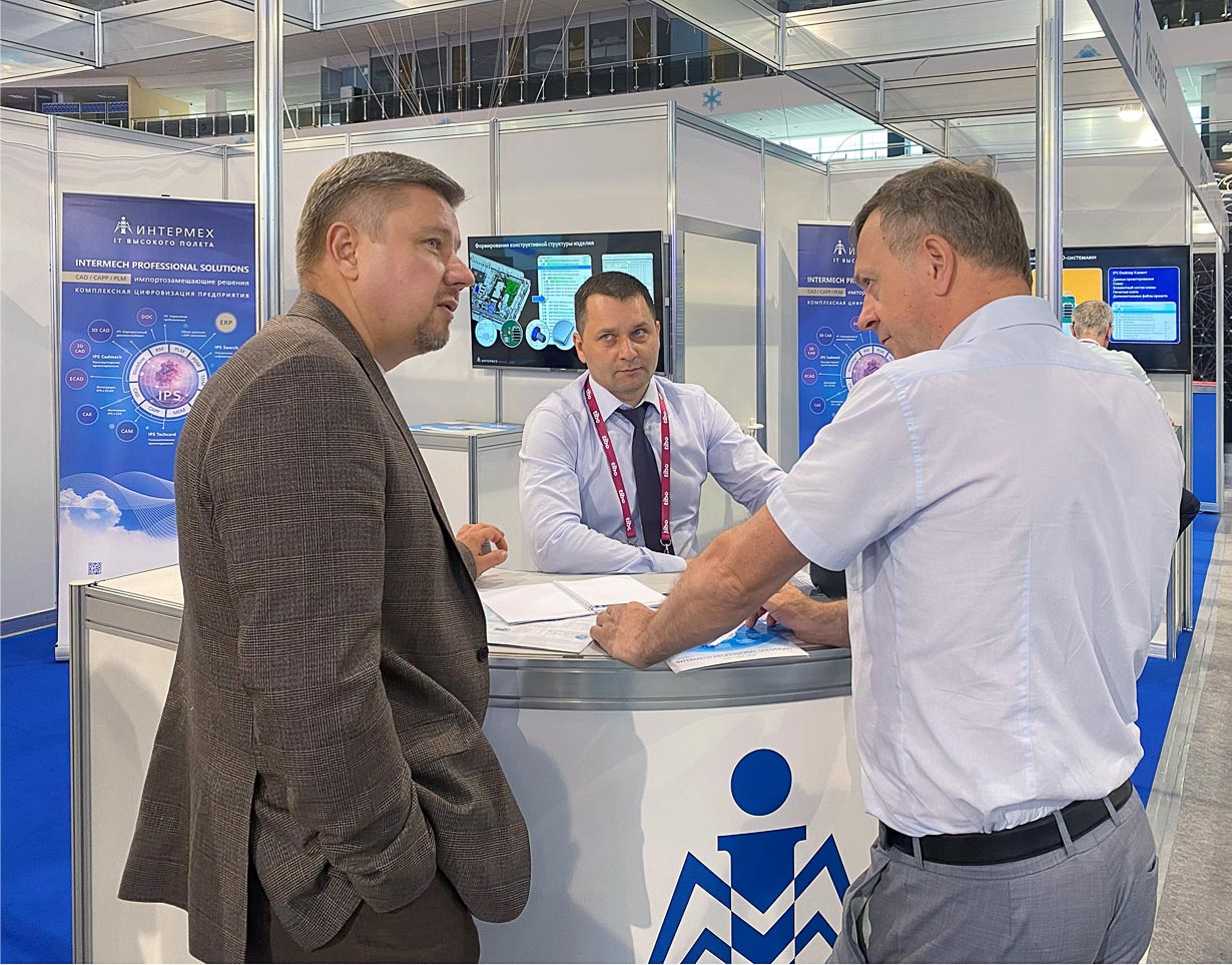 На стенде компании участники форума могли ознакомиться с функциональными возможностями системы поддержки жизненного цикла изделия IPS PLM, а также других комплексных решений ИНТЕРМЕХ.