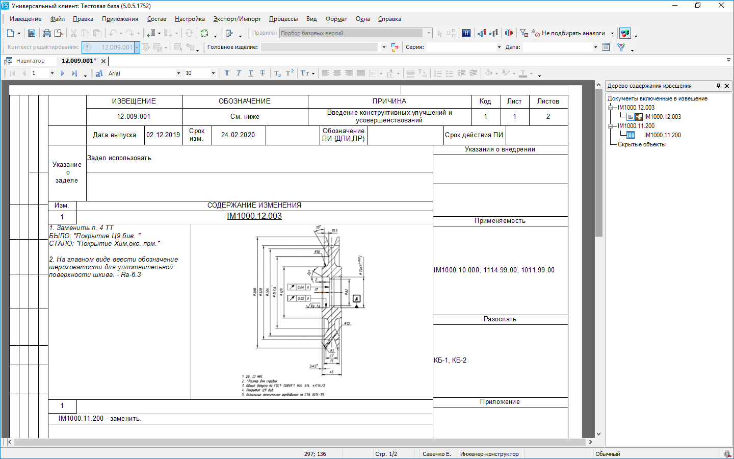 вставка графики, формул и т.п. Система поддерживает все виды извещений - ИИ, ПИ, ПР, ДИ, ДПИ, а также комплекты извещений и