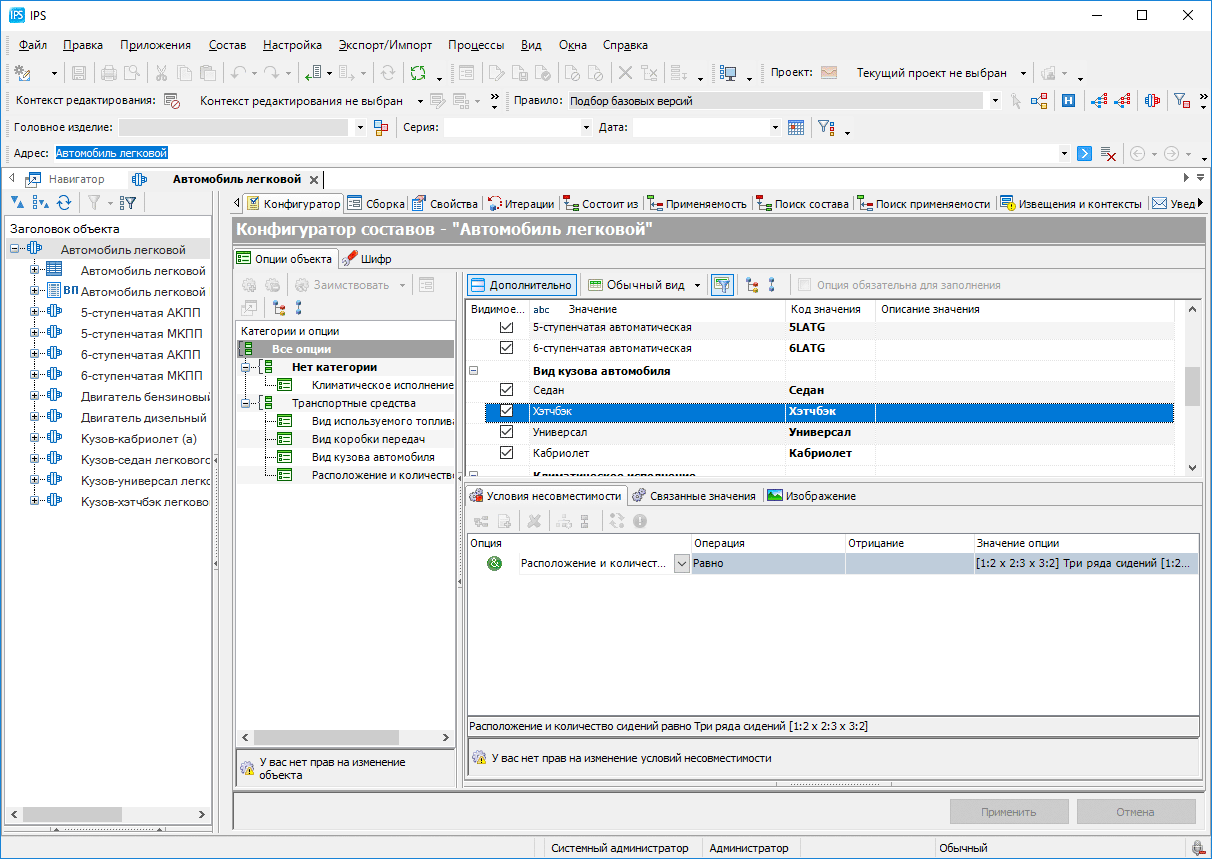 Конфигуратор состава изделий, позволяющий вычислять точный состав изделия на основании значений опций,