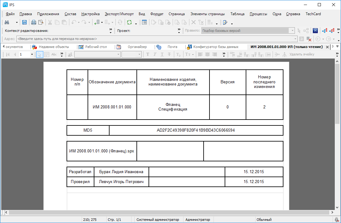 Собственный редактор документов и бланков на основе формата XML. Позволяет унифицировать создание, хранение и обработку любой текстовой конструкторско-технологической документации без применения сторонних офисных пакетов.