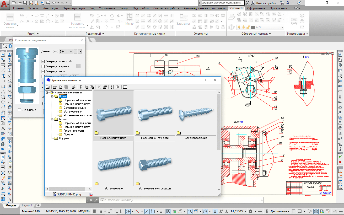 Стандартное информационное обеспечение Cadmech AutoCAD включает: