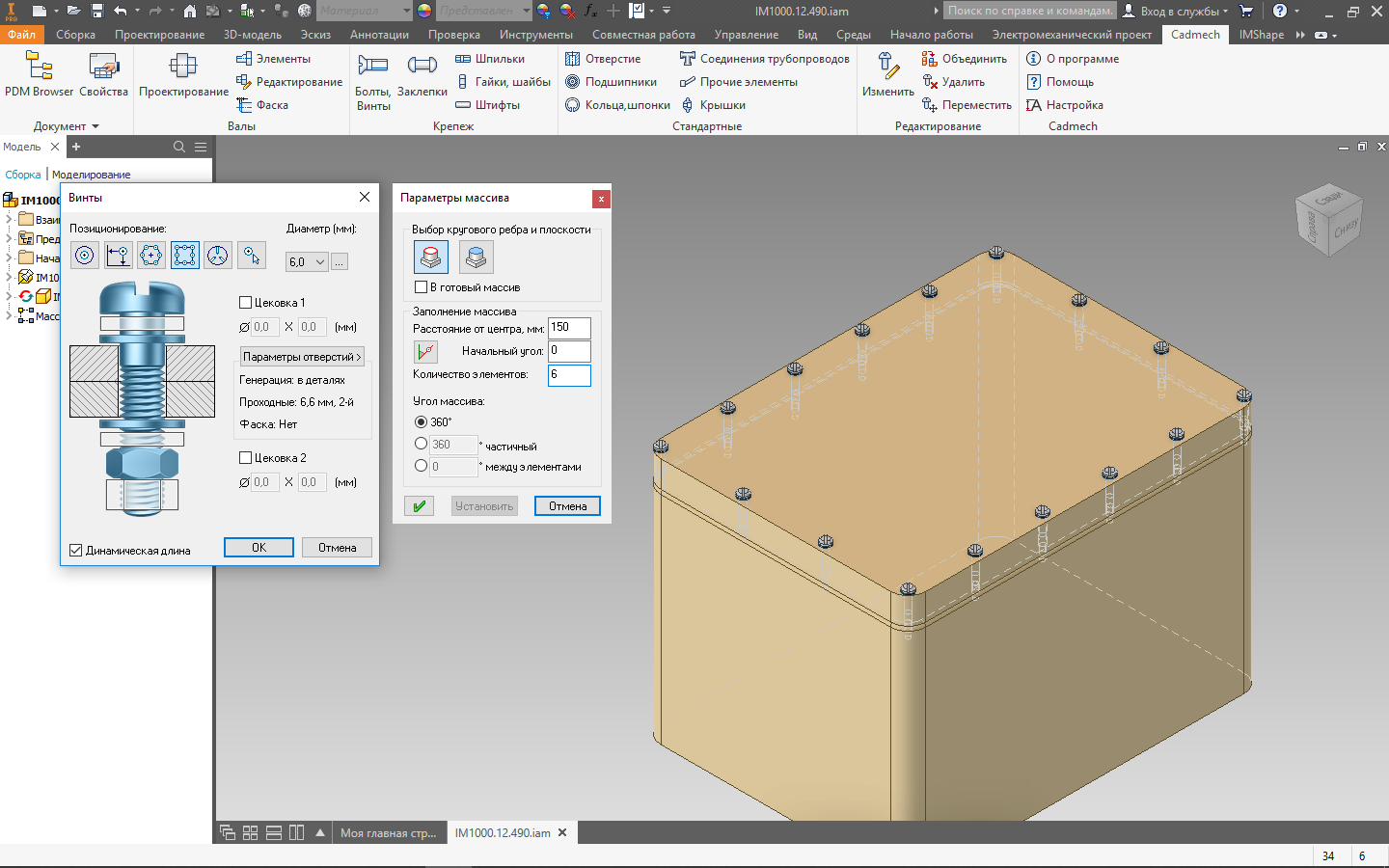 Cadmech Inventor предоставляет проектировщику эффективные и интуитивно понятные инструменты для расчета, вставки и редактирования пакета крепежных соединений: