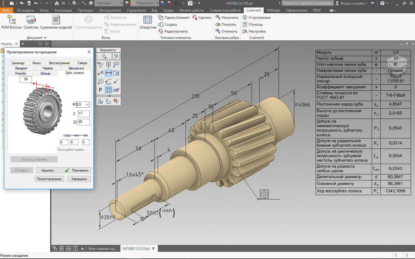 В состав комплекса Cadmech Inventor входит модуль для проектирования деталей типа «тело вращения» (валы, втулки, вал-шестерни и др.). Данный модуль позволяет:
