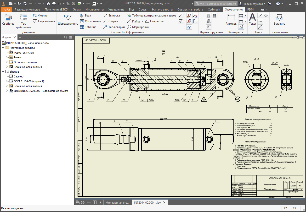 Используя функционал Cadmech Inventor по оформлению в среде 3D модели, пользователь приобретает возможность получить полную информационную модель изделия уже на стадии моделирования, а также может с легкостью получить оформленный чертеж этой модели.