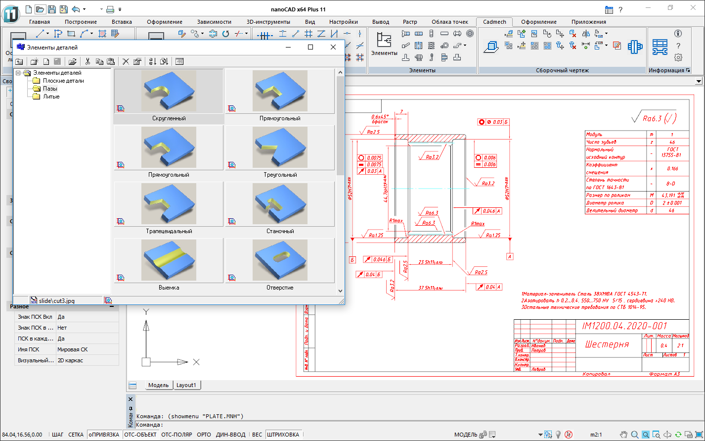 Cadmech NanoCAD позволяет оформлять чертежи в соответствии с требованиями ЕСКД: