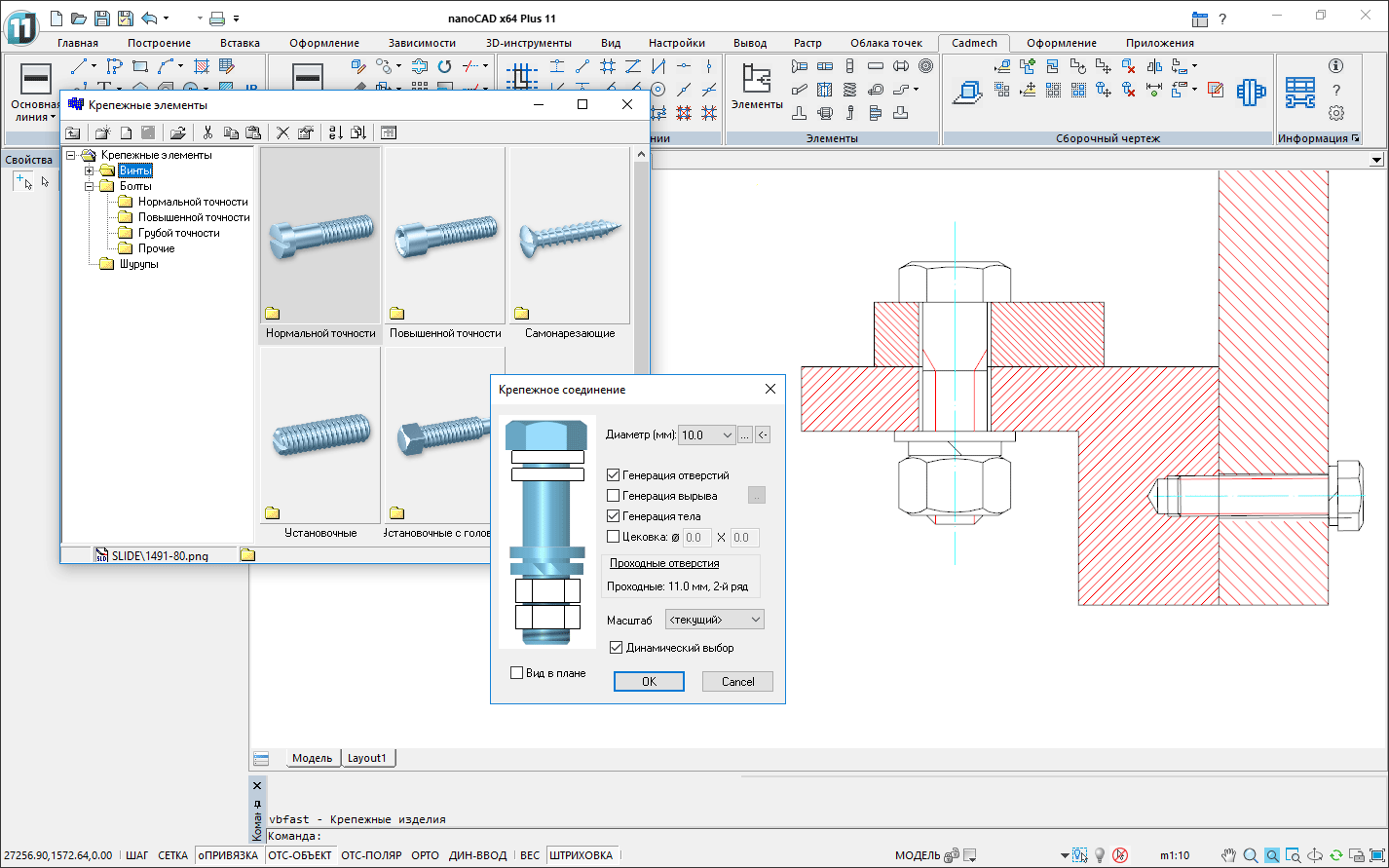 Cadmech nanoCAD расширяет возможности системы nanoCAD при помощи специализированных инструментов,
