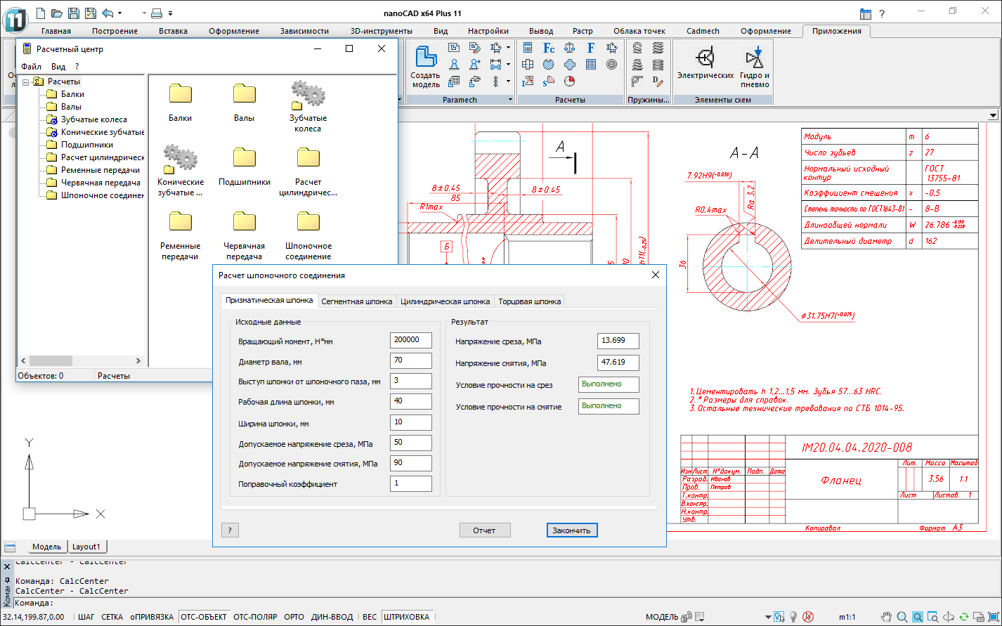Cadmech nanoCAD содержит в своем составе расчетный центр, который позволяет производить следующие инженерные расчеты: