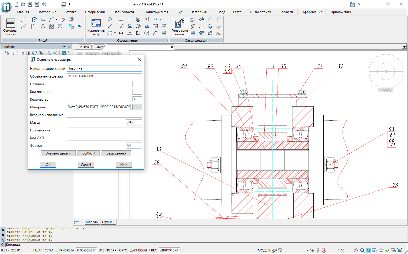 Cadmech nanoCAD позволяет генерировать спецификации на основании сборочного чертежа, и выполнять следующие функции: