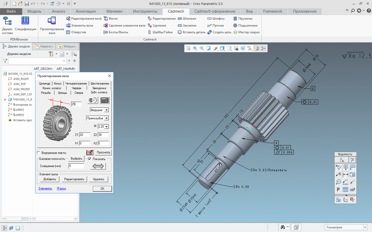 В состав комплекса Cadmech ProE входит модуль для проектирования деталей типа «тело вращения» (валы, втулки, вал-шестерни и др.).