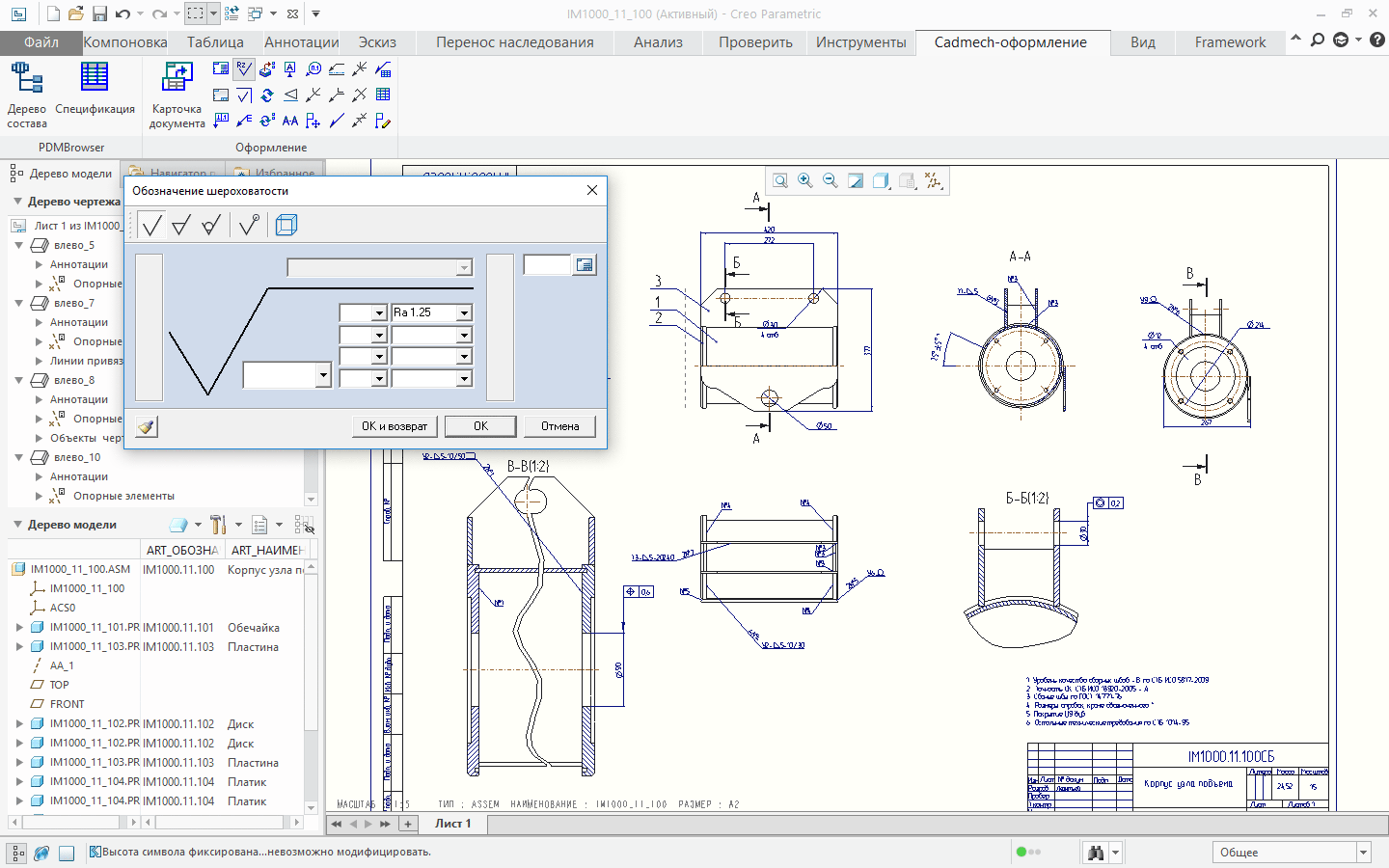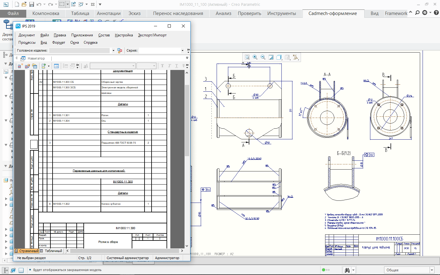 Cadmech ProE позволяет генерировать спецификации на основании модели сборки или сборочного чертежа. Данные в