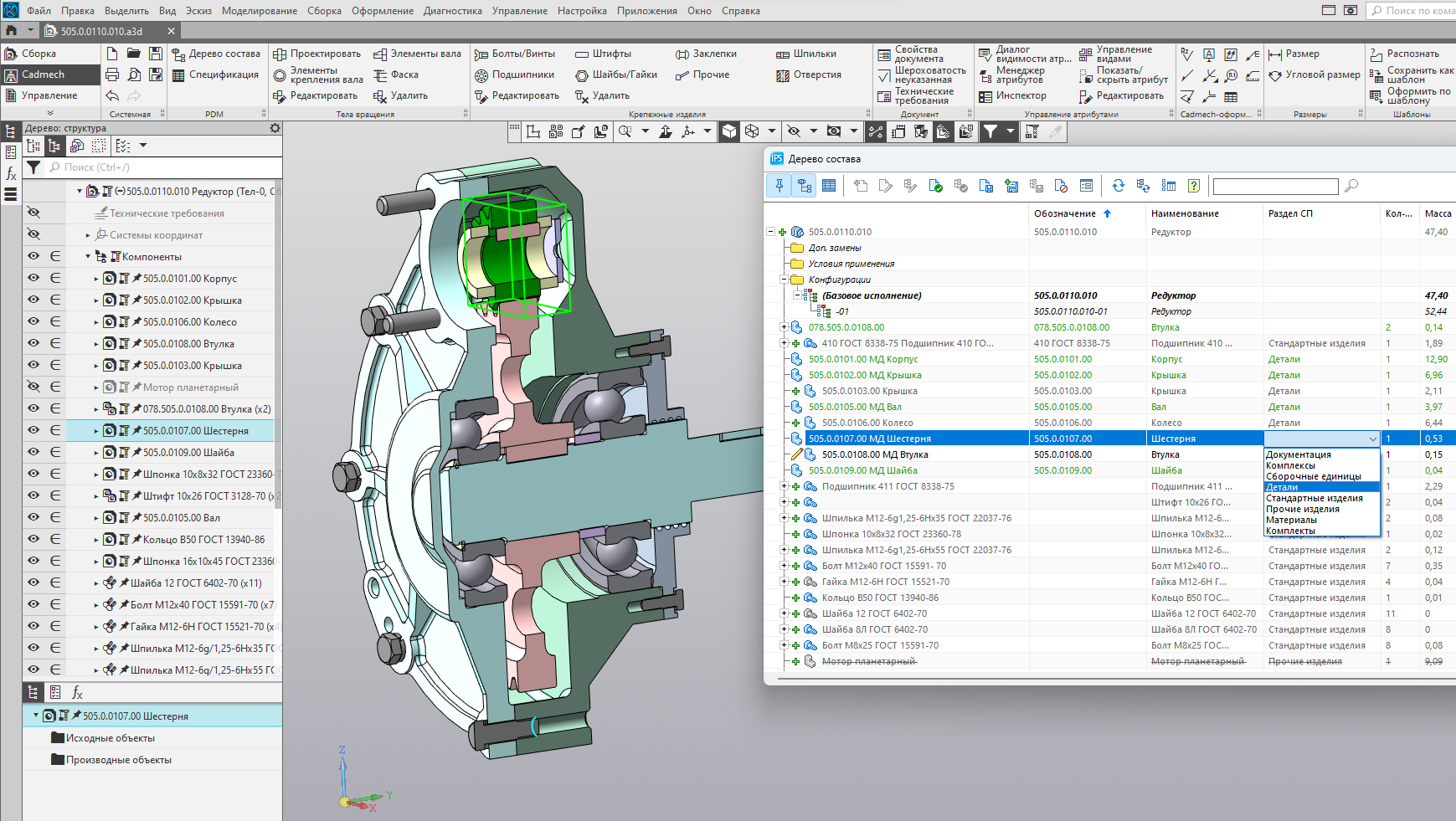 Интеграция IPS Search с CAD-системами обеспечивает управление составом изделий и статусом документа непосредственно из CAD-системы, при этом работа непосредственно со сборкой производится с учетом актуальных заменителей, подобранных версий и заданных опций конфигуратора состава.