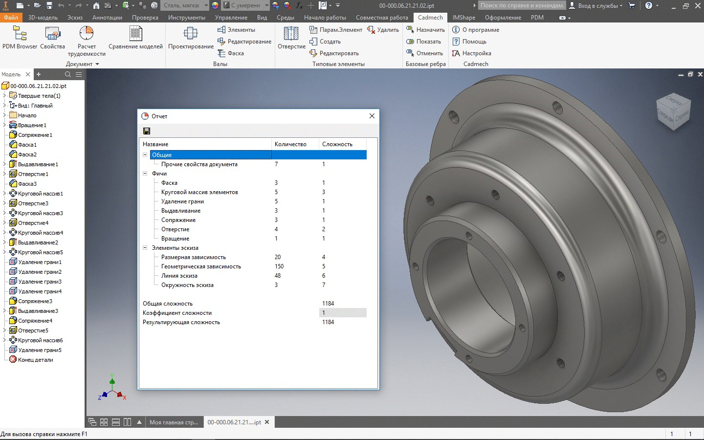Определение трудоемкости создания документа осуществляется на основе учета всех элементов построений, созданных в данном документе.