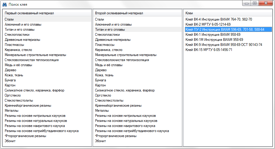 Марки клеев, их свойства (характеристики, режимы склеивания) и склеиваемые материалы.