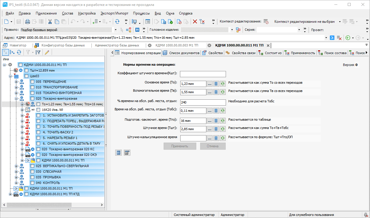 IPS Techcard содержит необходимые для работы технологические каталоги и справочники (сортамент, оборудование, оснастка, персонал, операции, переходы и др.), настроенные шаблоны выходных документов (маршрутная карта, операционная карта, карта эскизов и др.) и примеры расчета технологических параметров (режимов обработки, трудового и материального нормирования).