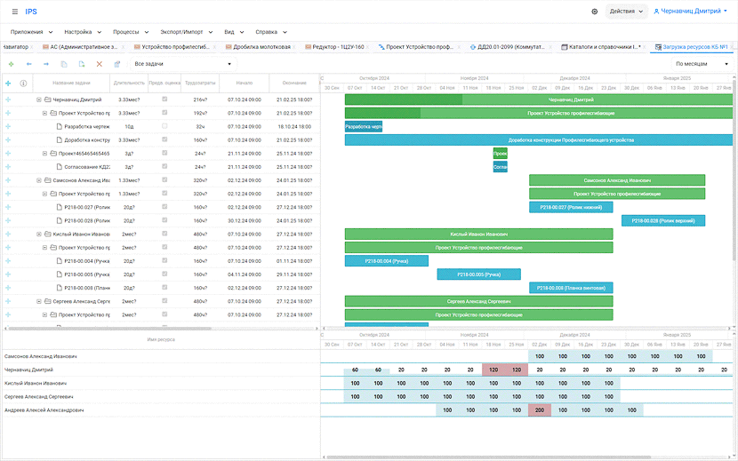 Модуль управления проектами IPS IMProject предназначен для решения задач календарного планирования, контроля и координации работ по проекту. Он позволяет разрабатывать и наполнять содержимым проекты, распределять ресурсы по задачам, отслеживать прогресс выполнения и анализировать объемы работ.