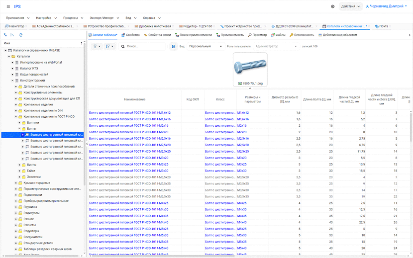 Информационно-справочная система IPS IMBASE представлена отдельной веткой в дереве информационного пространства, в которой вся информация собрана и представлена в иерархической структуре данных. Рабочая область Навигатора состоит из стандартных закладок, открытие которых предоставляет доступ к основным функциональным возможностям и командам системы IPS.