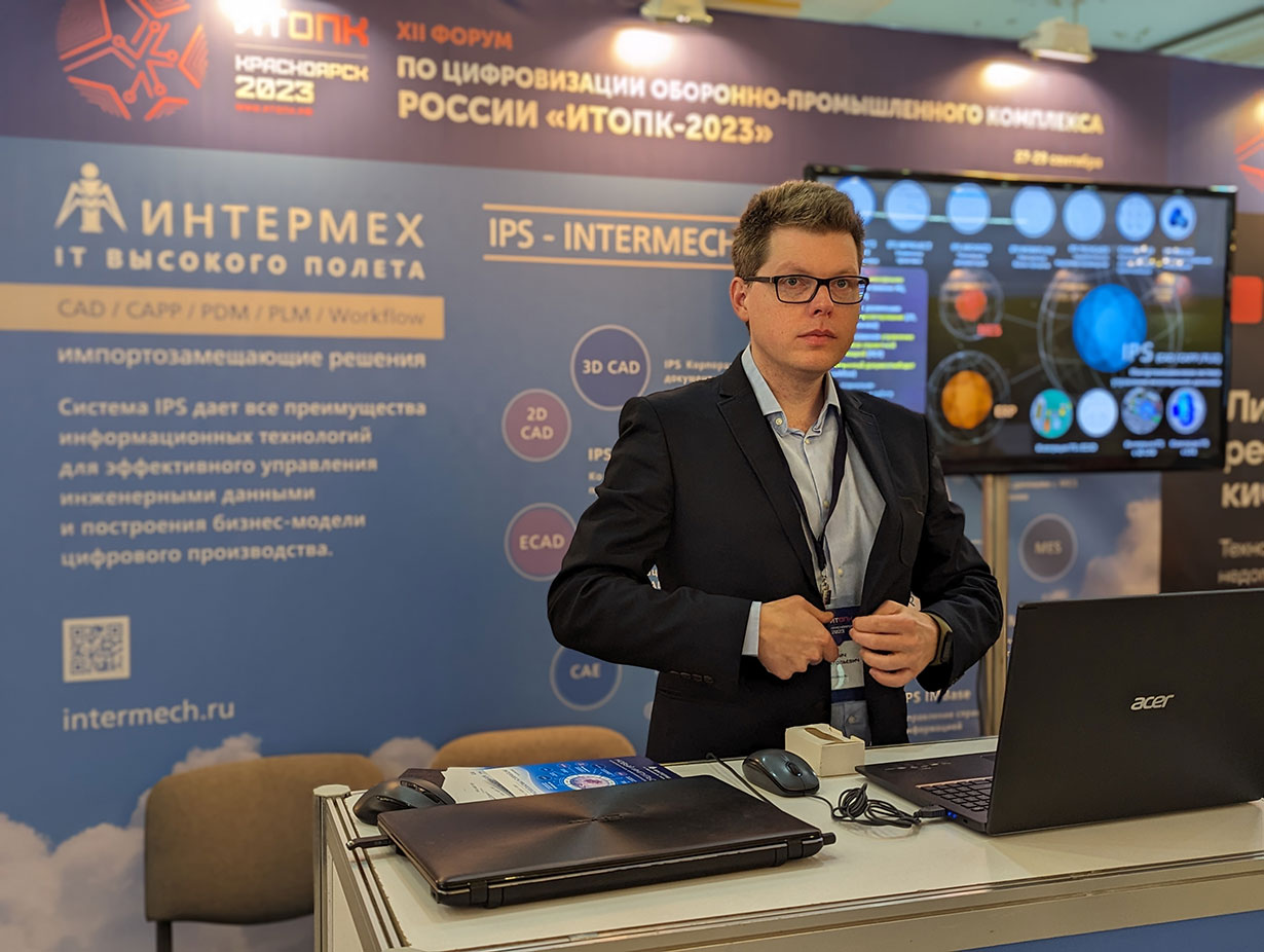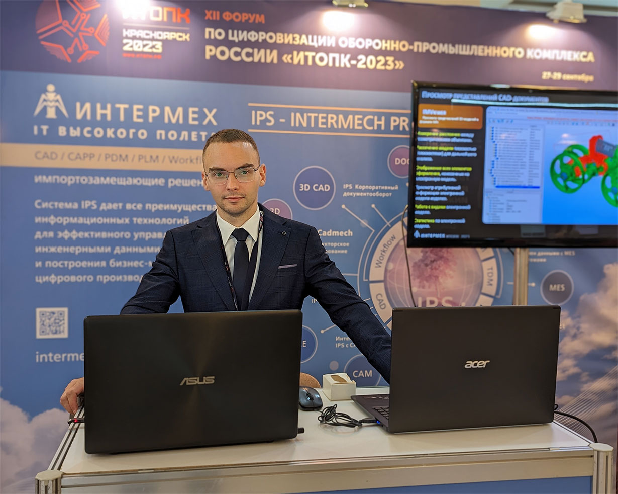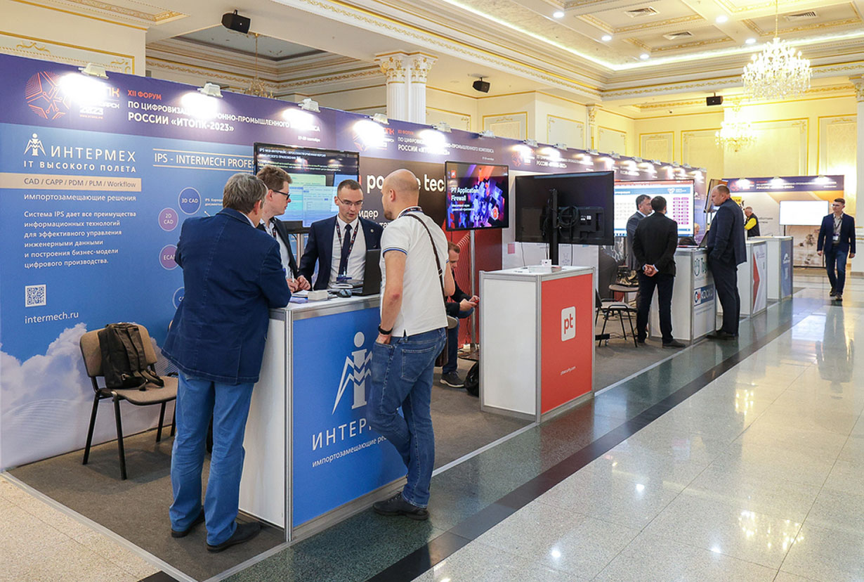 Традиционно на форуме работала выставочная экспозиция. На стенде ИНТЕРМЕХ участники «ИТОПК-2023» смогли ознакомиться с широкими функциональными возможностями PLM-системы IPS и другими комплексными решениями ИНТЕРМЕХ, а также обсудить перспективы дальнейшего развития решений ИНТЕРМЕХ в области актуальных интеграционных решений и перехода предприятий на импортонезависимые программные продукты.