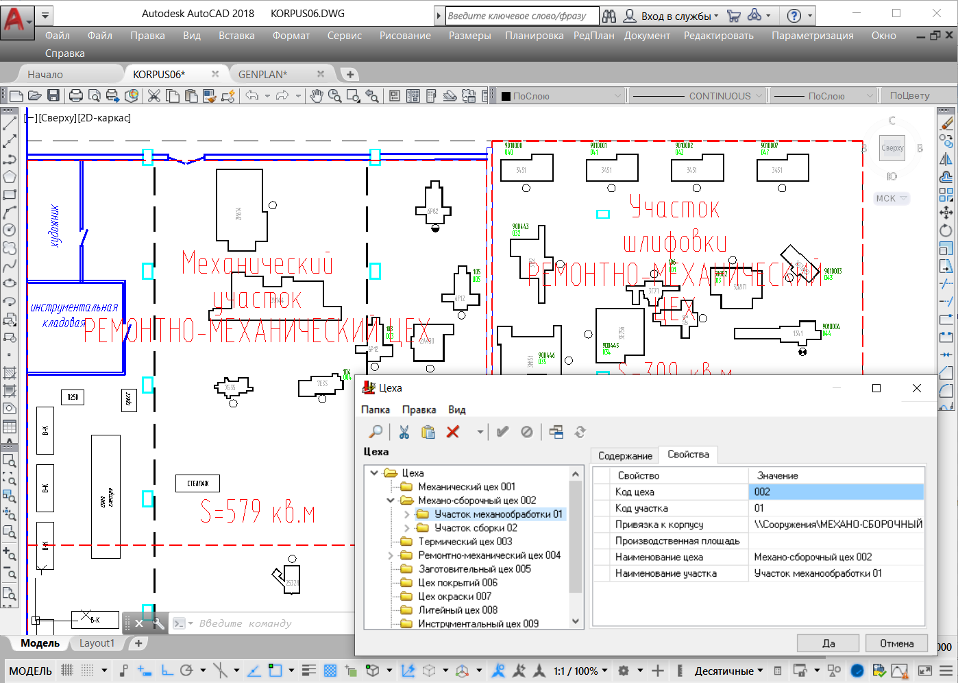 LCAD предполагает создание и хранение в БД технологических планировок на строительной подоснове производственного корпуса (здания).