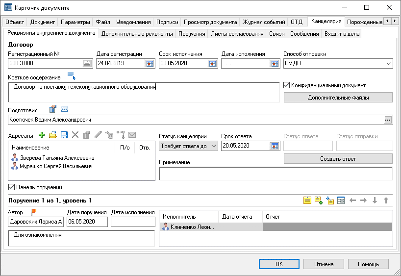 Для рассылки сообщений, заданий и контроля за их исполнением, а также для согласования документации, используется механизм внутренней электронной почты.