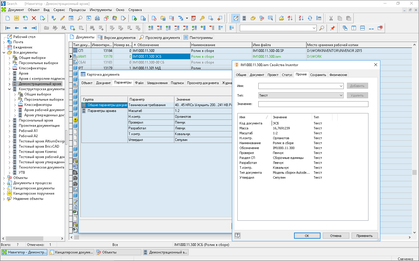 Конструкторские документы (спецификации, чертежи, 3D-модели и др.), занесенные в архив, служат источником информации, которую Search использует для ведения базы данных изделий, а также для построения взаимосвязей между ними.