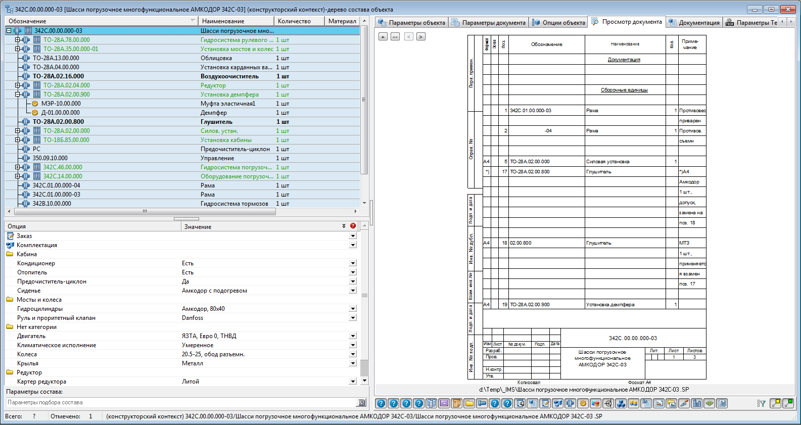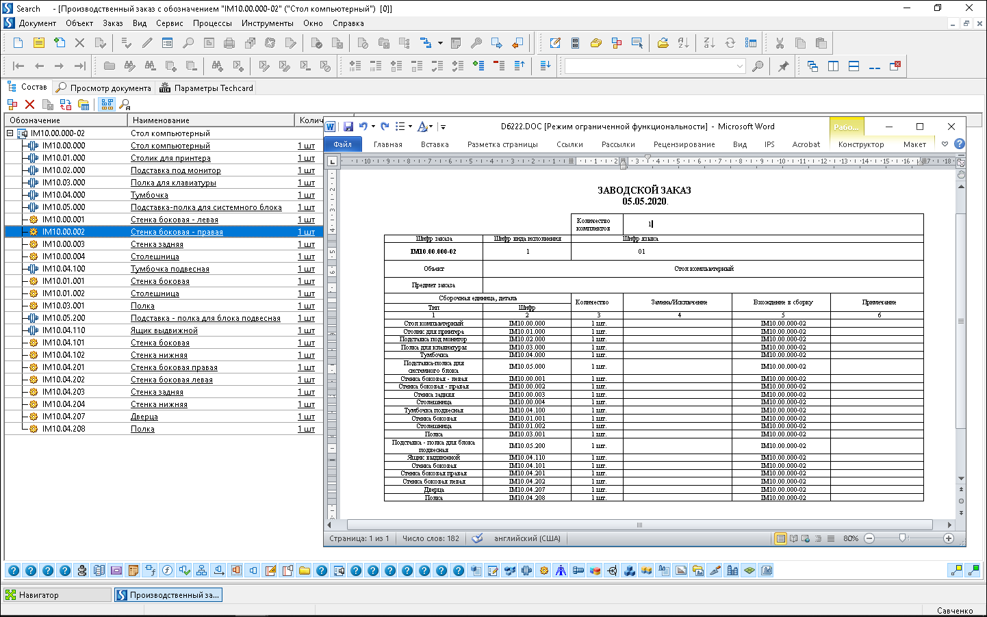 По завершении конфигурирования состава формируется спецификация заказа, в которой для каждой позиции заказа хранится список согласованных с заказчиком опций изделия, что позволяет получить точный состав изделия на дату исполнения заказа.