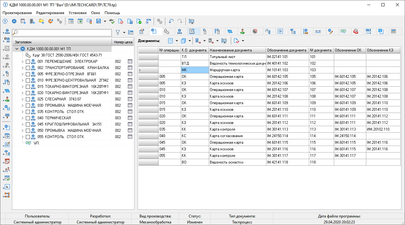 - Оперативная настройка вида и состава комплекта технологических документов на различные типы производств.