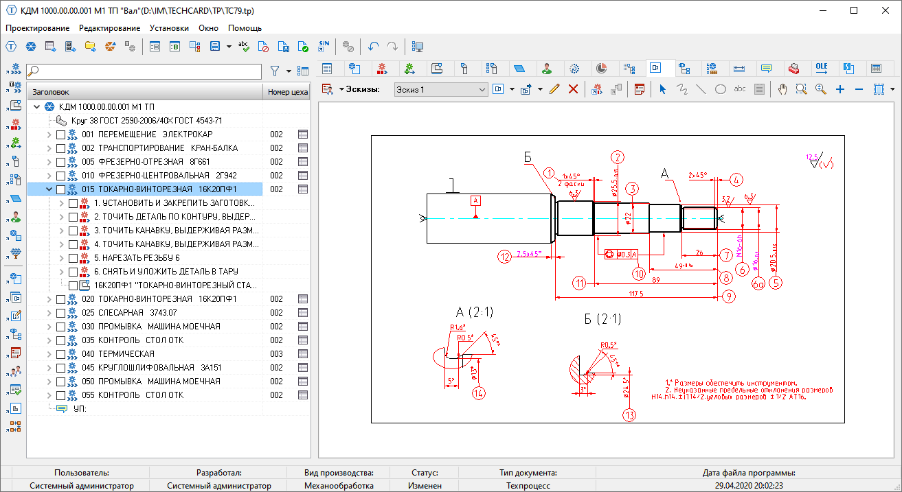 - Создание типовых (групповых) технологических процессов на группу деталей, работа с единичными технологическими процессами,