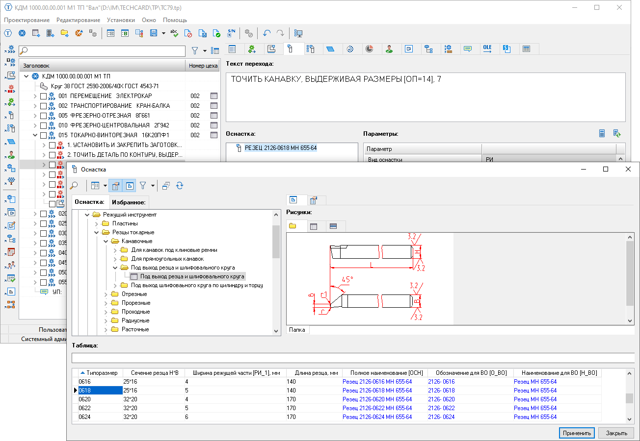 Система Techcard поддерживает проектирование технологических процессов обработки деталей для